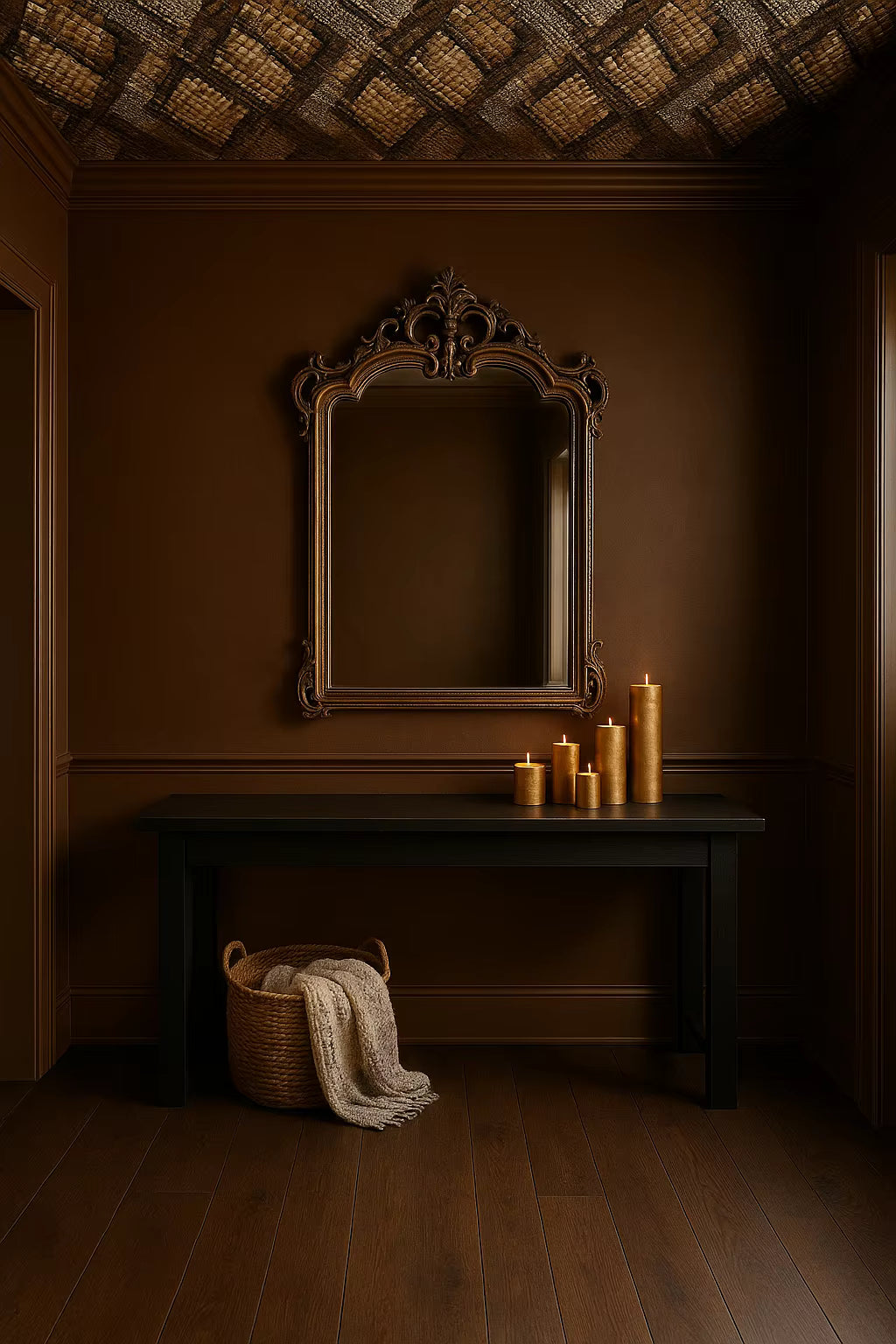 Bold yet refined, this wallpaper is designed to command attention. Perfect for statement interiors, Gilded Python brings a couture-inspired edge to powder rooms, dressing rooms, accent walls, and luxe spaces that favor drama and confidence.
