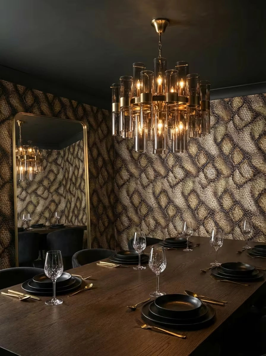 Rich, textural, and undeniably bold, this realistic serpent print wraps the room in warm caramel, honey, and soft sand tones. The organic scale pattern adds movement and depth while staying grounded in natural neutrals — making it dramatic without overwhelming the space.